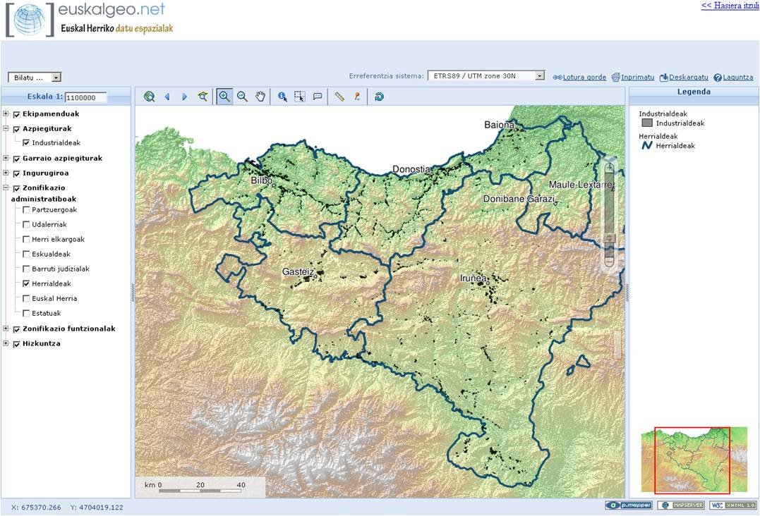 Gaindegia, observatorio para el desarrollo socioeconómico de Euskal Herria, acaba de publicar los datos espaciales de los polígonos industriales de Euskal Herria en su portal ww.euskalgeo.net.industriaguneak
