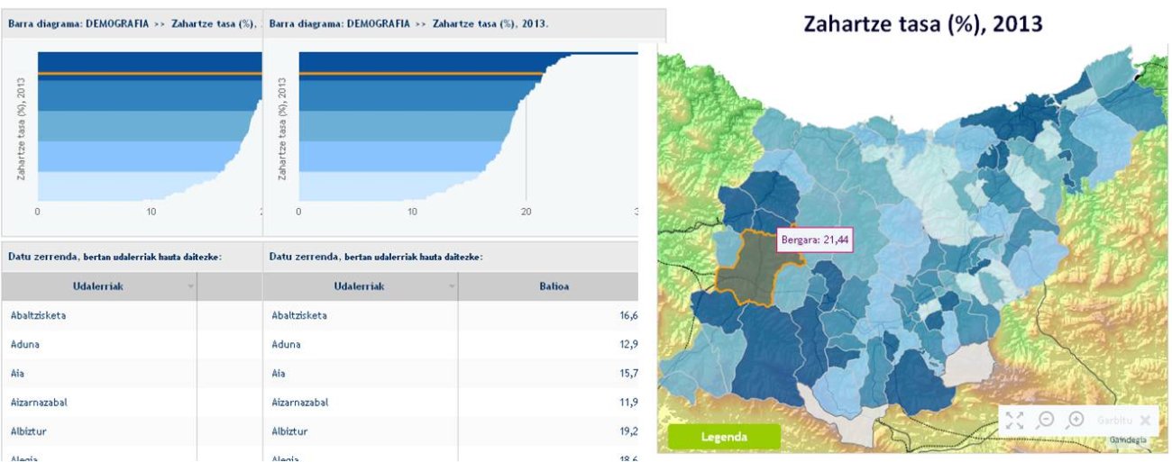 A día de hoy ya se ofrece una amplia gama de indicadores socioeconómicos, como datos demográficos, de desempleo, formación de la población, trabajadores por sectores, número de establecimientos en cada sector, etc. Es el usuario/a quien elige si quiere consultar dichos datos por municipios, comarcas o agencias de desarrollo.