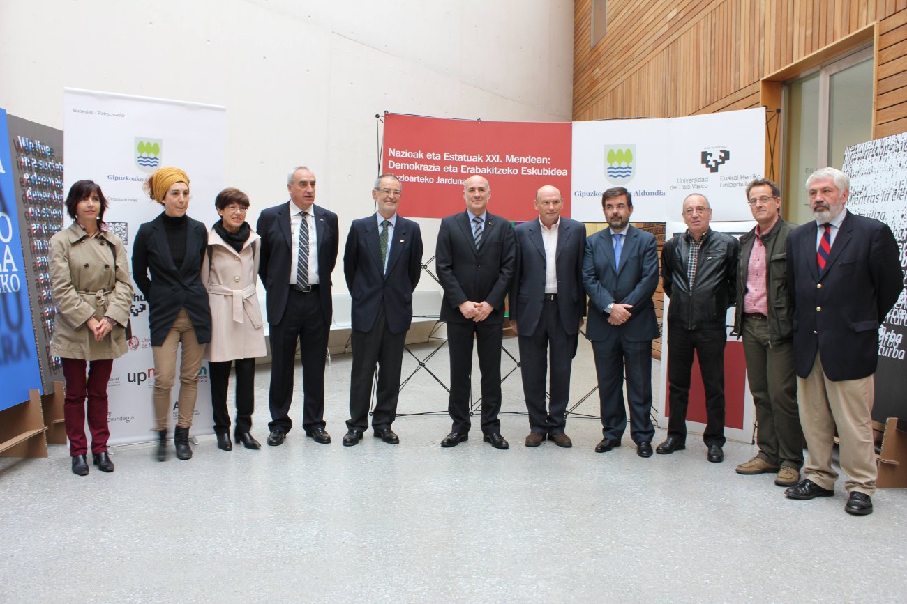Nazioak eta Estatuak XXI. Mendean: Demokrazia eta Erabakitzeko Eskubidea Nazioarteko Jardunaldiak antolatu ditu Eusko Ikaskuntzak eta EHUk abenduaren 10tik 12ra Donostian. Atzo izan zen aurkezpena, eta Iñaki Goirizelaia UPV/EHUko errektorea eta Iñaki Dorronsoro Ikaskuntzako lehendakariez gain, Batzorde Akademikoa osatzen duten erakundeetako ordezkariak bertaratu ziren: UPV/EHU, Nafarroako Unibertsitate Publikoa, Université de Pau et des Pays del Adour, Mondragon Unibertsitatea, Deustuko Unibertsitatea, Nafarroako Unibertsitatea, Gaindegia eta Agirre Lehendakari Center.
