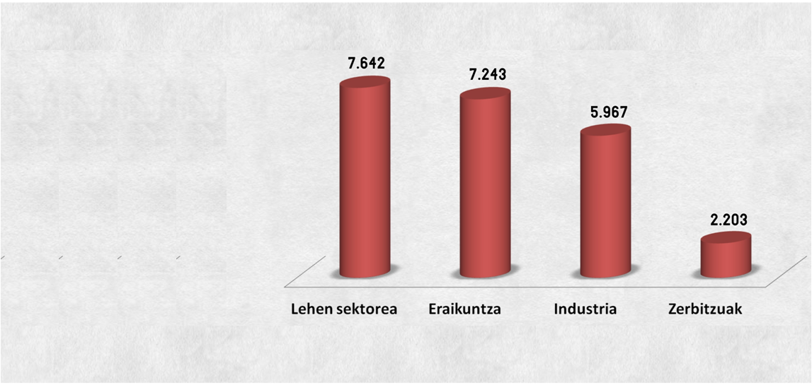 2007an Hego Euskal Herrian egindako kontratazio guztien %78,9 zegoen zerbitzuei lotuta, eta proportzioa %84,1eraino igo zen 2013rako. 2013tik 2014ra, aldiz, ia hamar puntuko jaitsiera gertatu da, hain zuzen, industriako kontratazioak oso nabarmen hazi direlako.