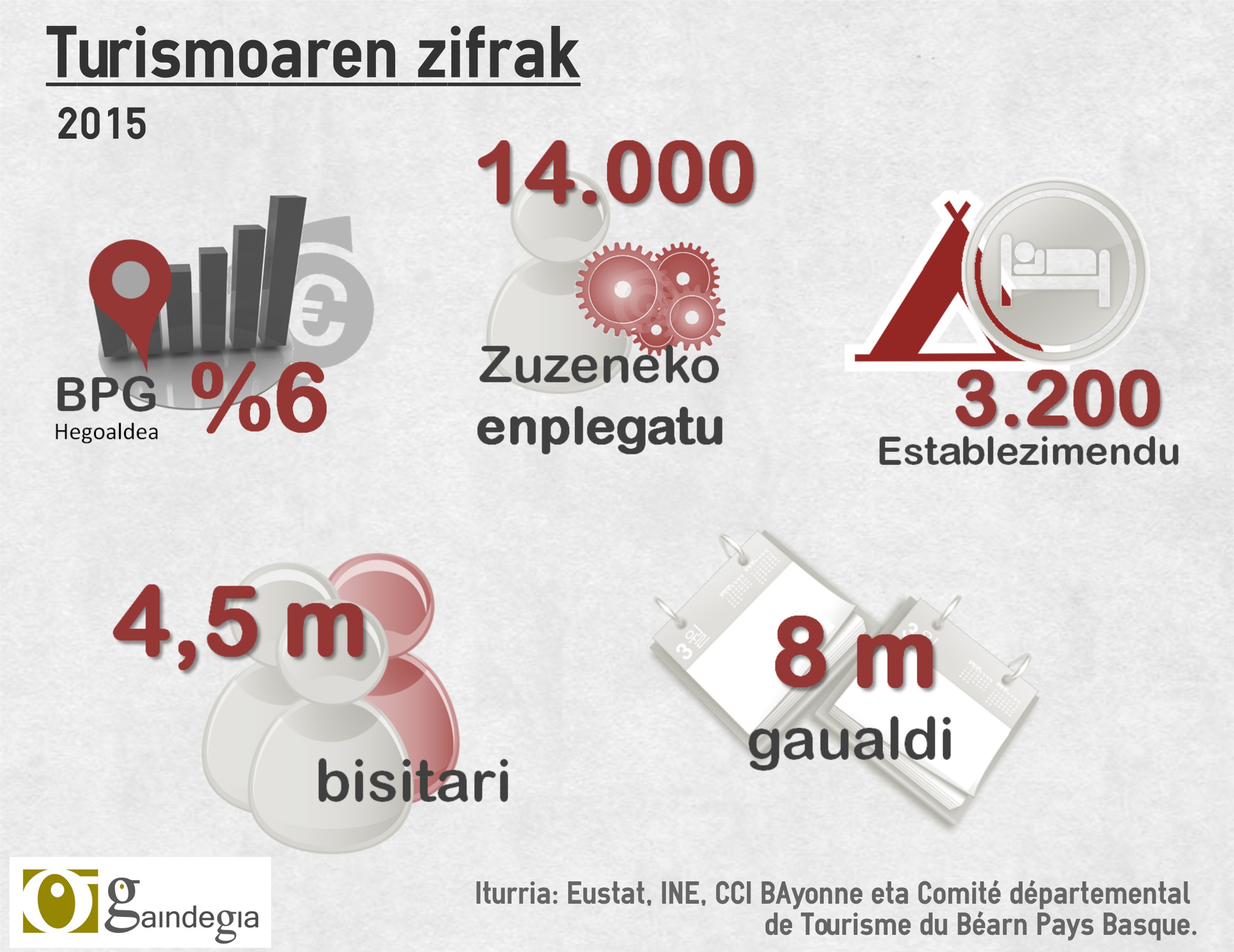 Azken urteetan turismoak indar garrantzitsua hartu du gurean. Datuak ikustea besterik ez dago: urtea amaitu ez bada ere, udak eman duena ikusita esan daiteke 4.500.000 bisitari eta 8.000.000 gaualdi egingo dituztela bisitariek (bertako zein atzerriko) Euskal Herrian 2015ean.